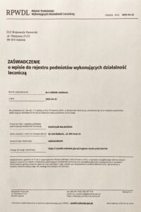 Zaświadczenie o wpisie do rejestru podmiotów wykonujących działalność leczniczą